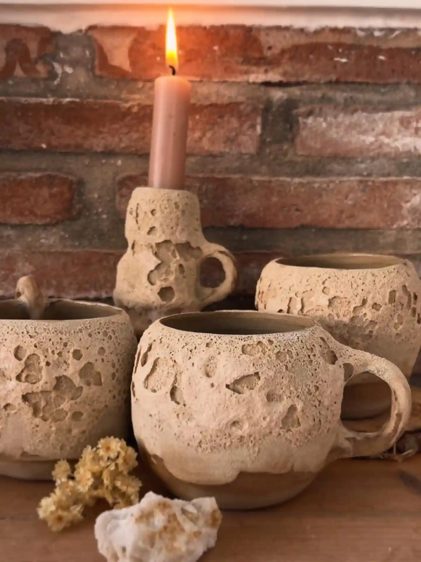 Cada pieza se realiza a mano, una a una, por lo que nunca será idéntica a otra: la arcilla, el fuego y el gesto hacen que cada forma sea única, irrepetible.