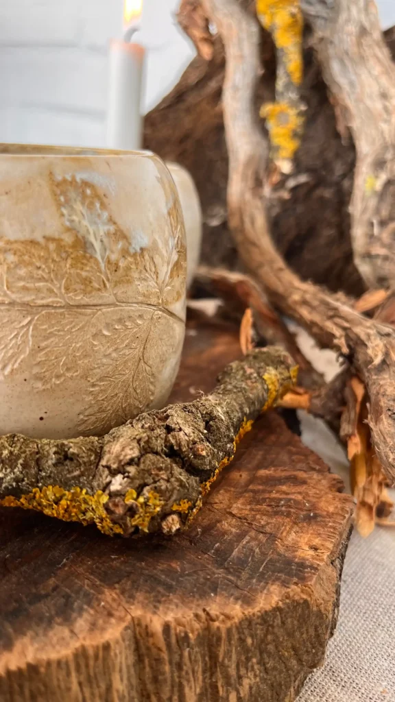 Cada taza es única, creada a mano y acompañada por el aroma del palo santo, dejando