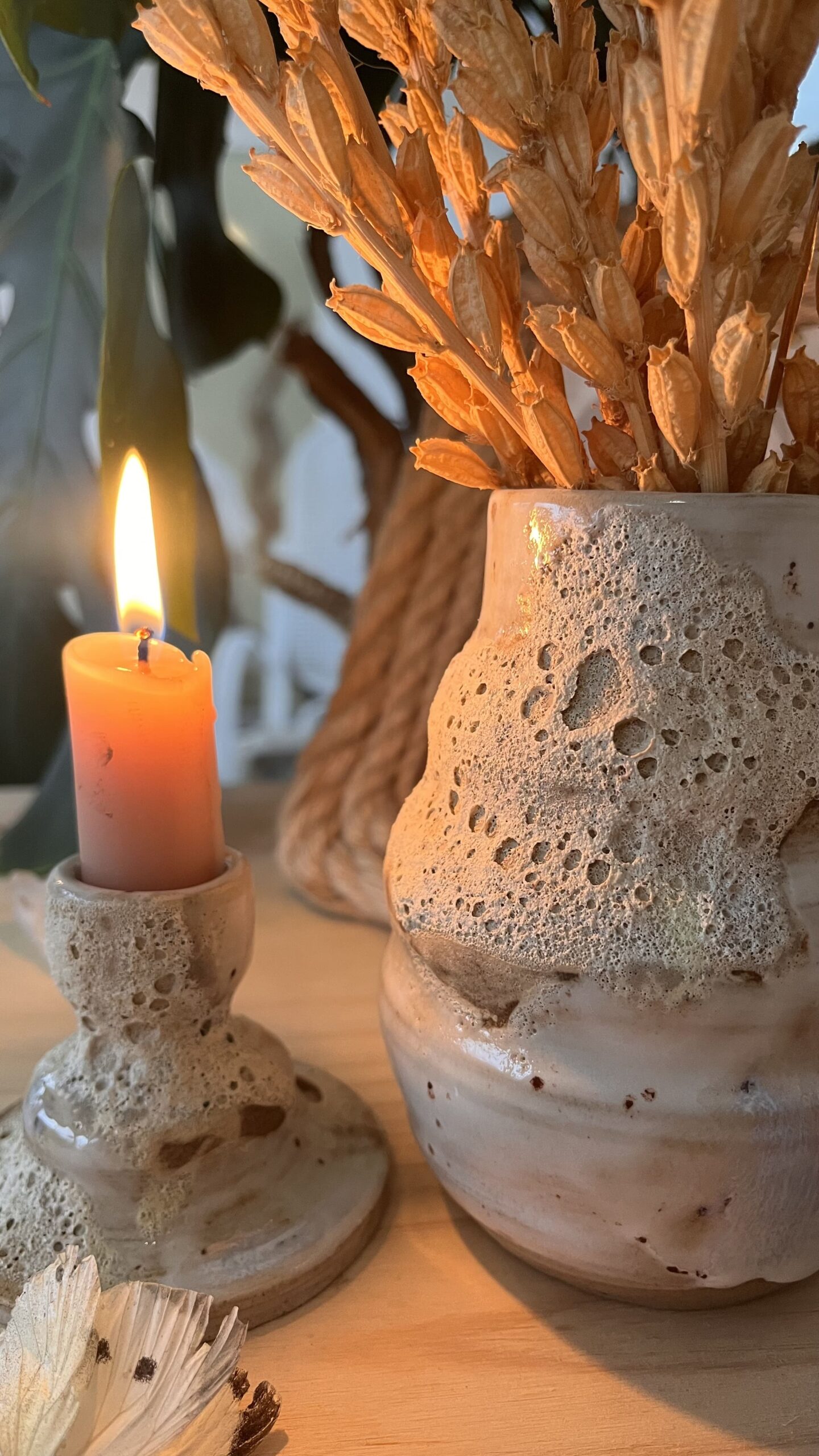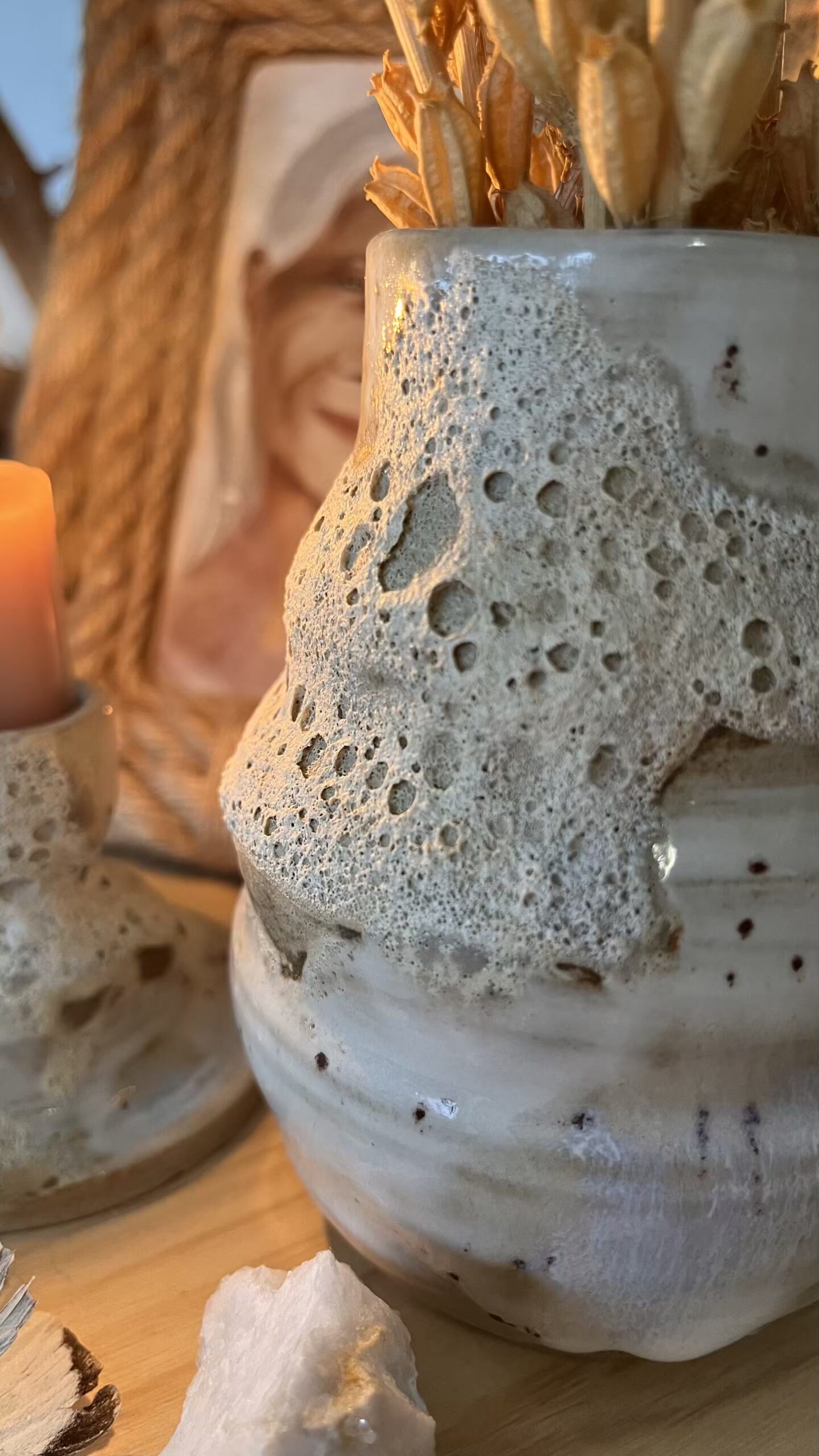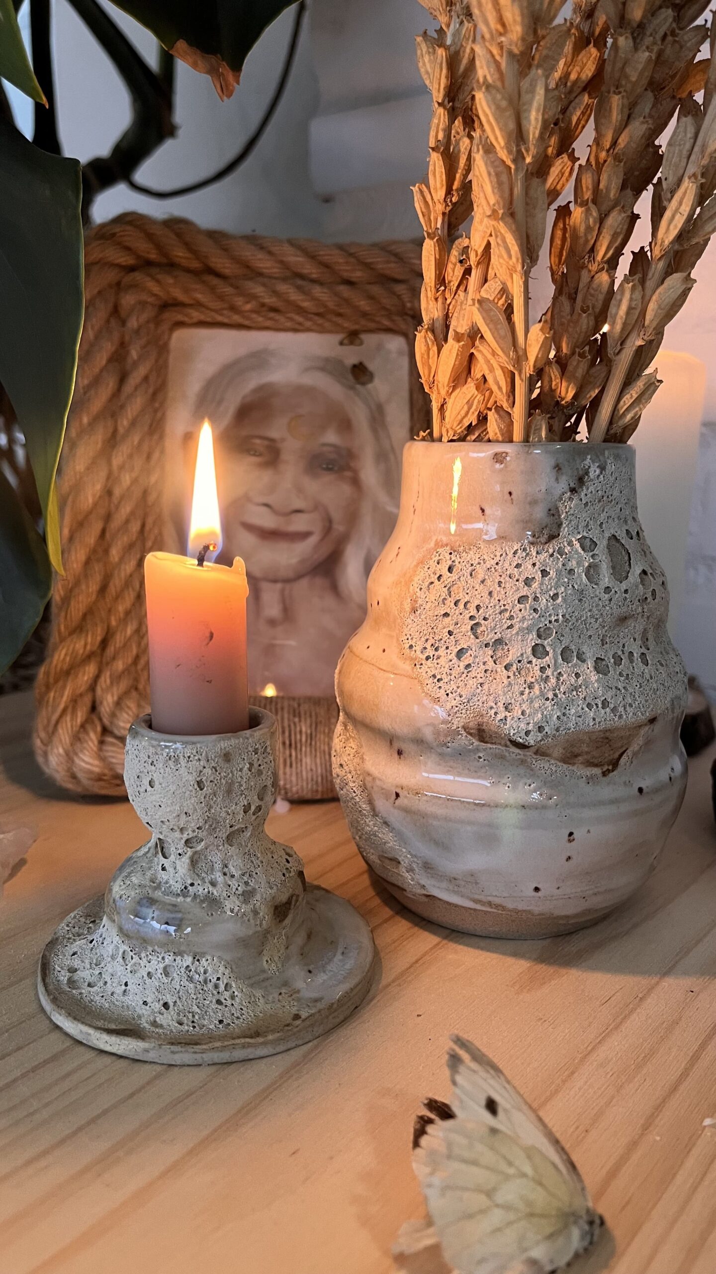 Su tacto recuerda a la superficie de la luna: áspera y delicada a la vez, marcada por el paso del tiempo y por la belleza de lo no pulido.