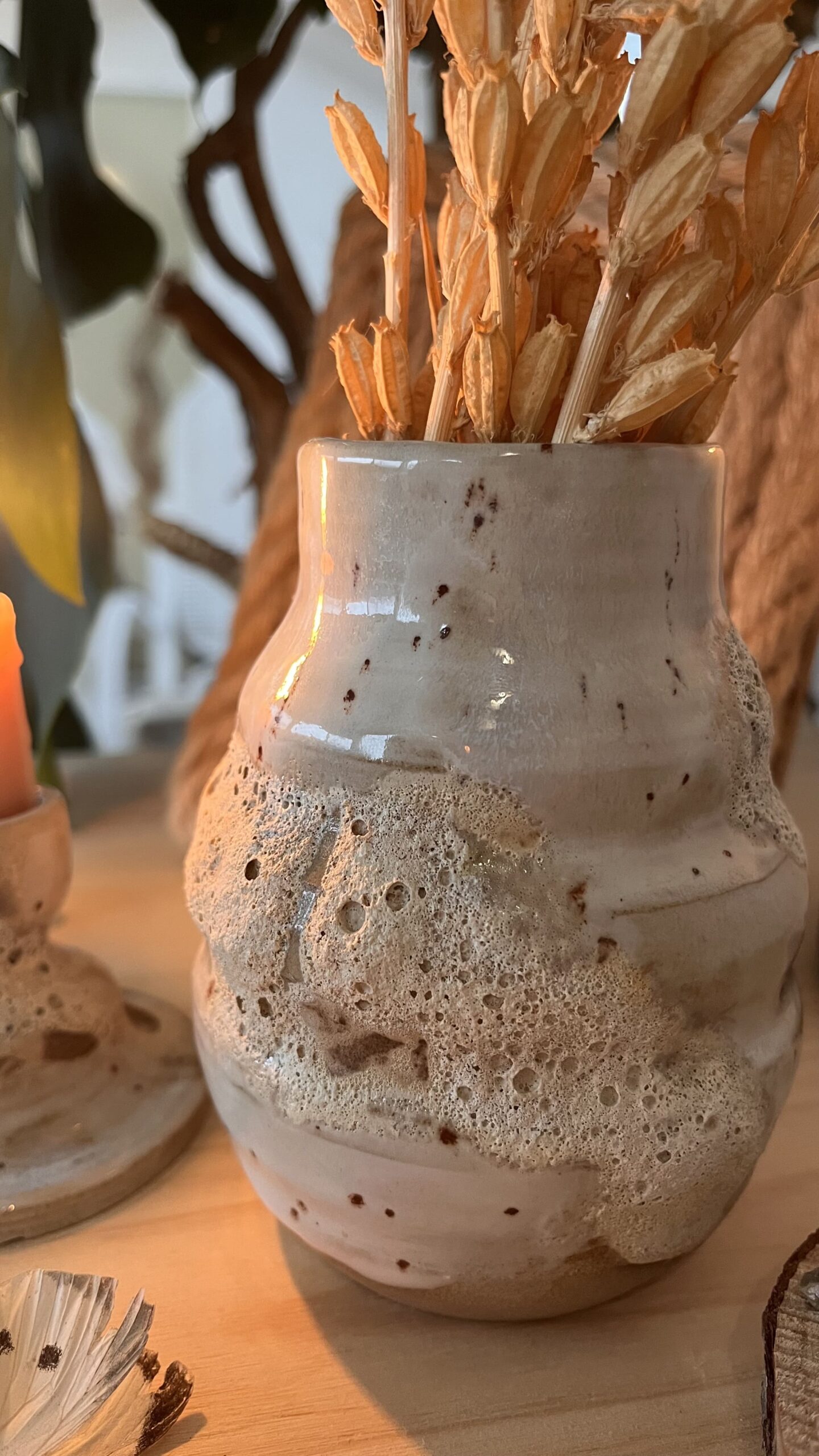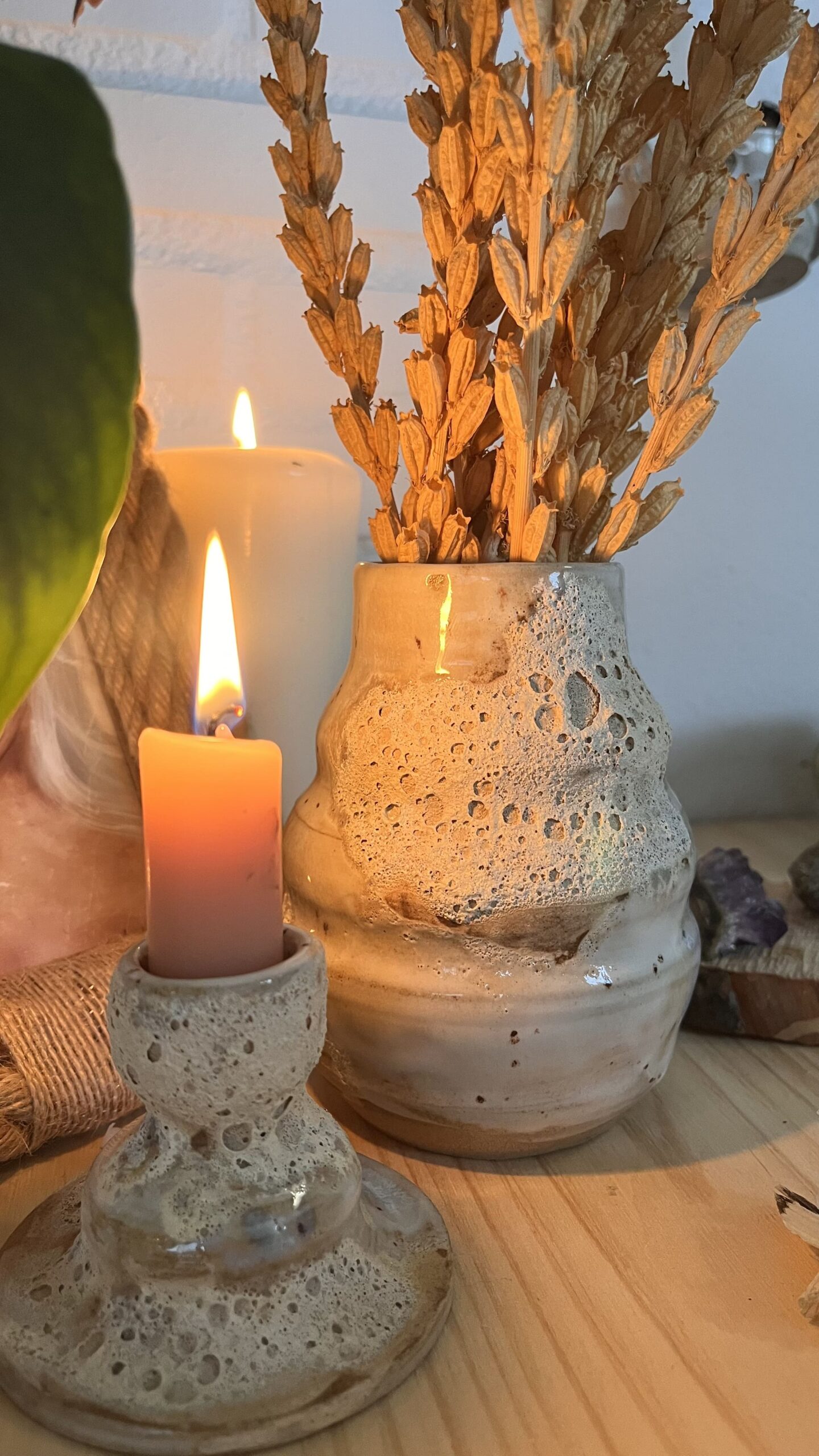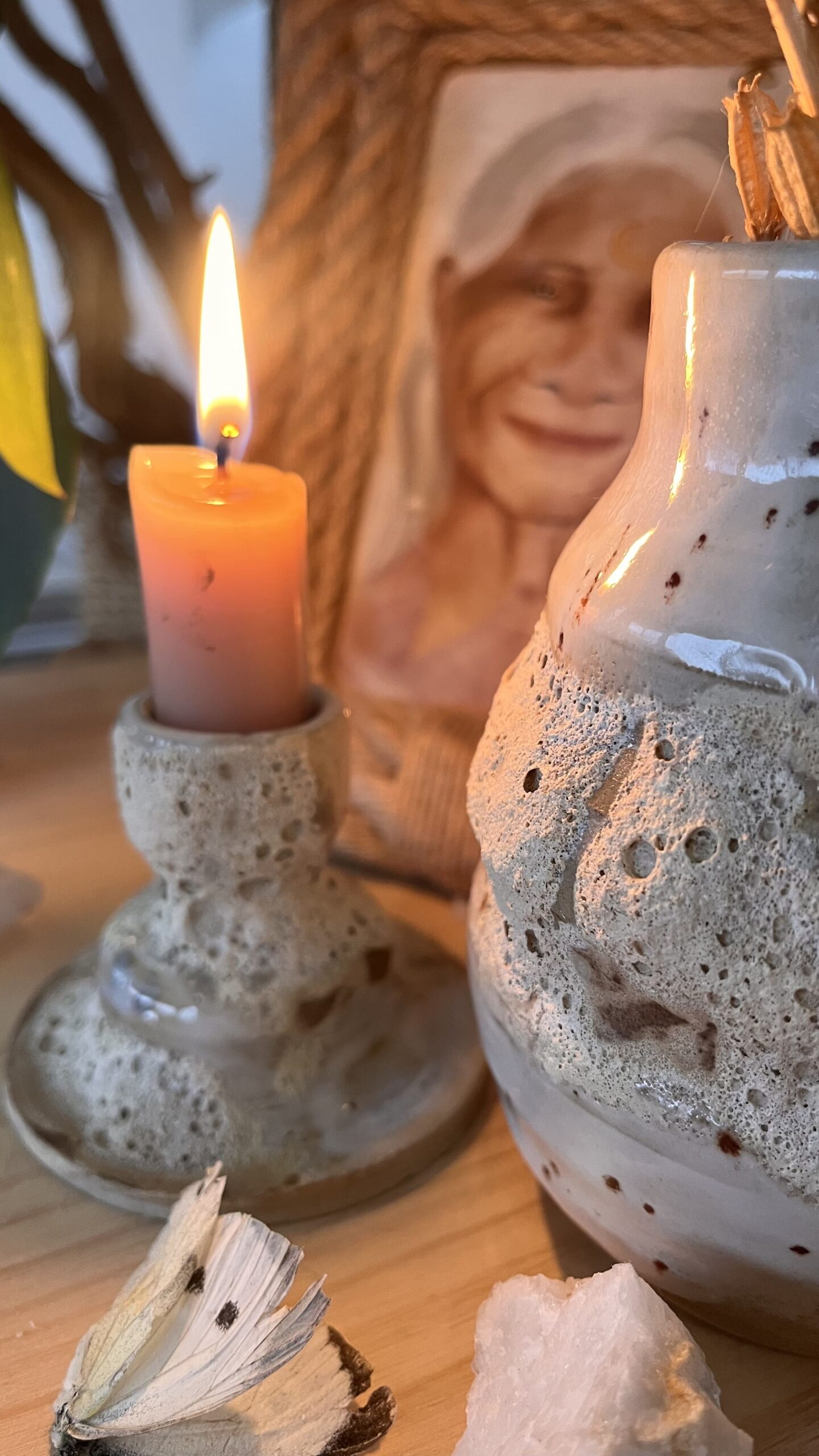 Su tacto recuerda a la superficie de la luna: áspera y delicada a la vez, marcada por el paso del tiempo y por la belleza de lo no pulido.