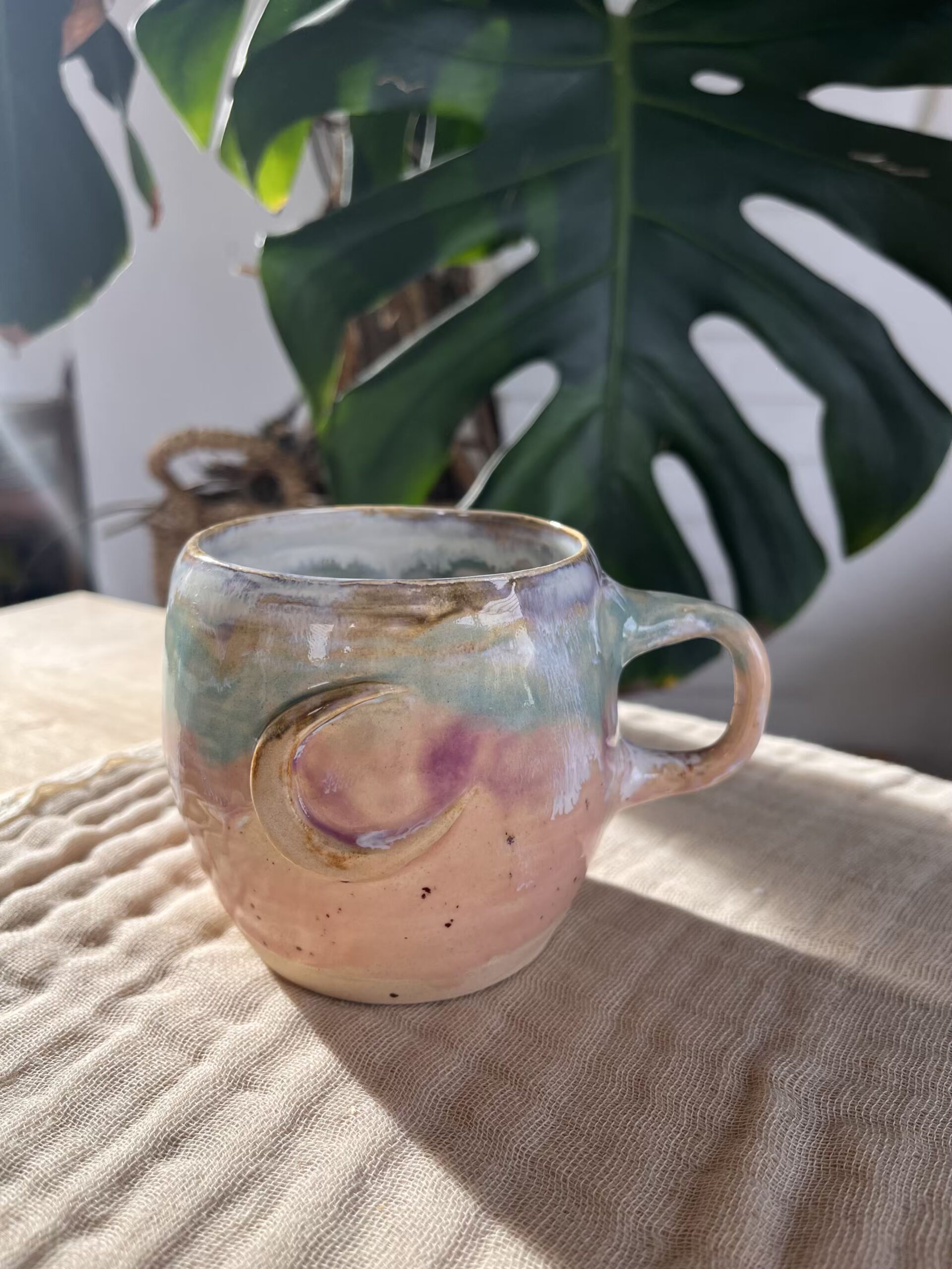 Más que una taza, es un puente entre la memoria de esos encuentros y tu propio espacio sagrado, entre lo femenino y lo ritual, entre la vida cotidiana y la poesía del atardecer.