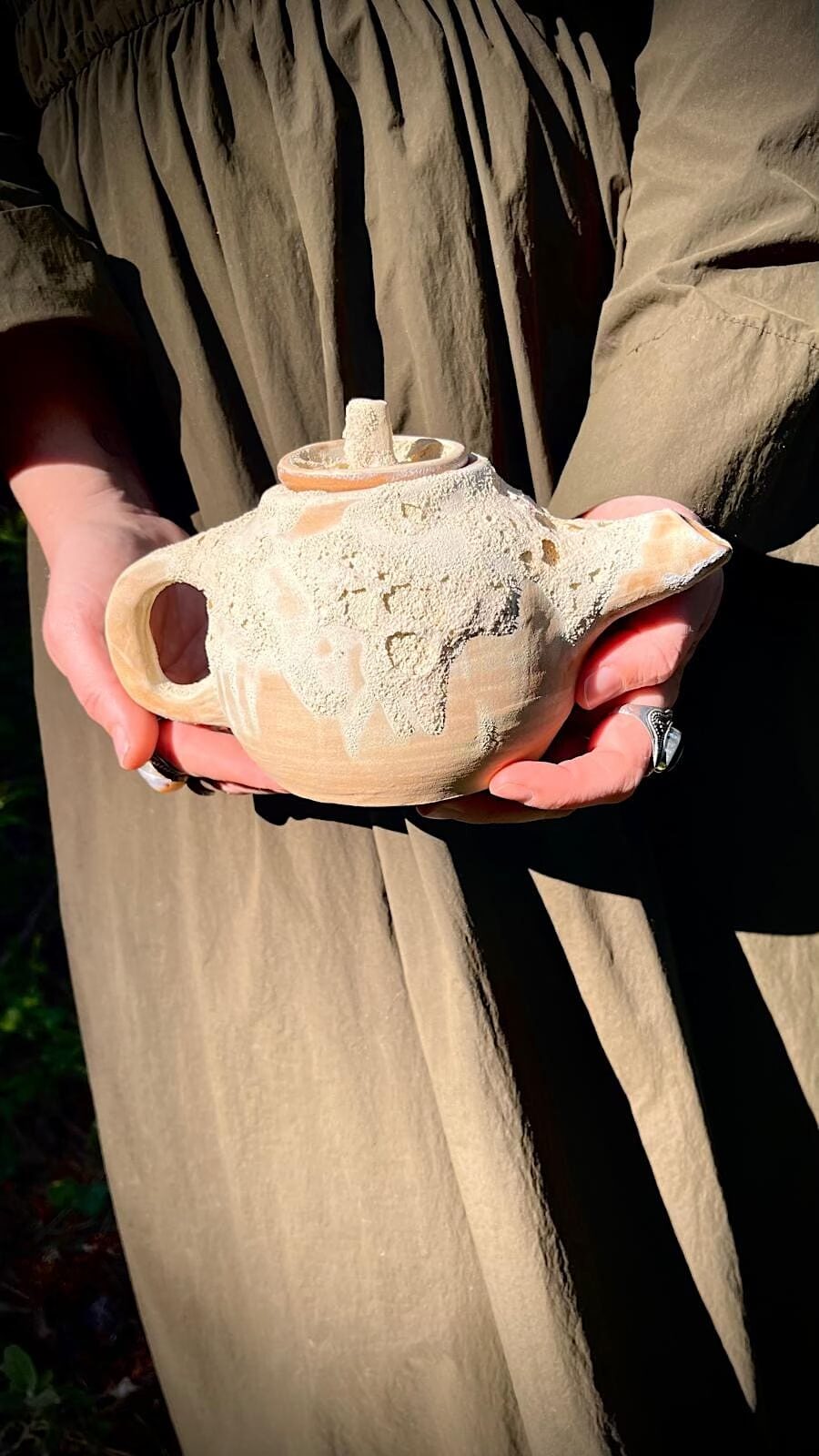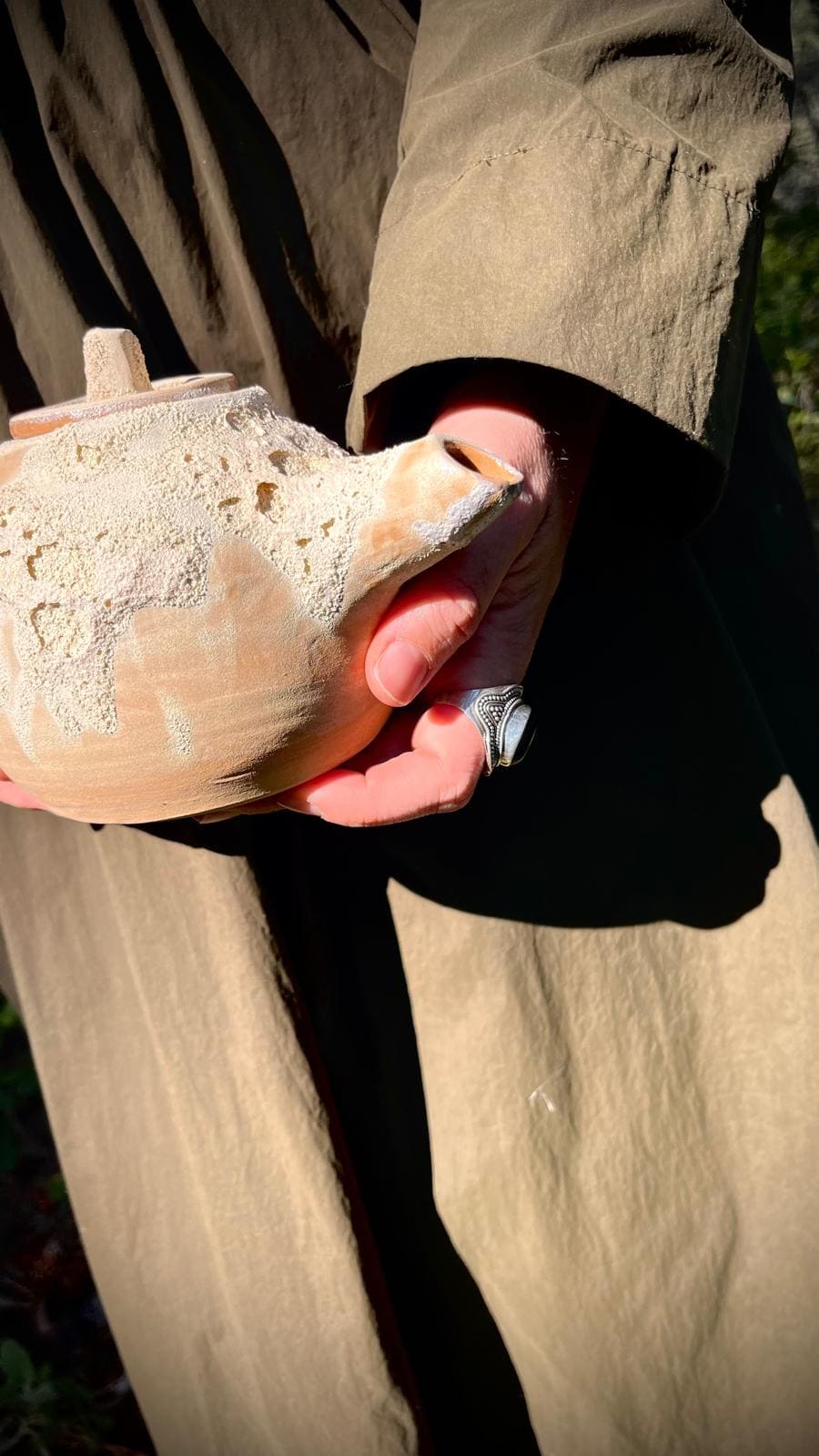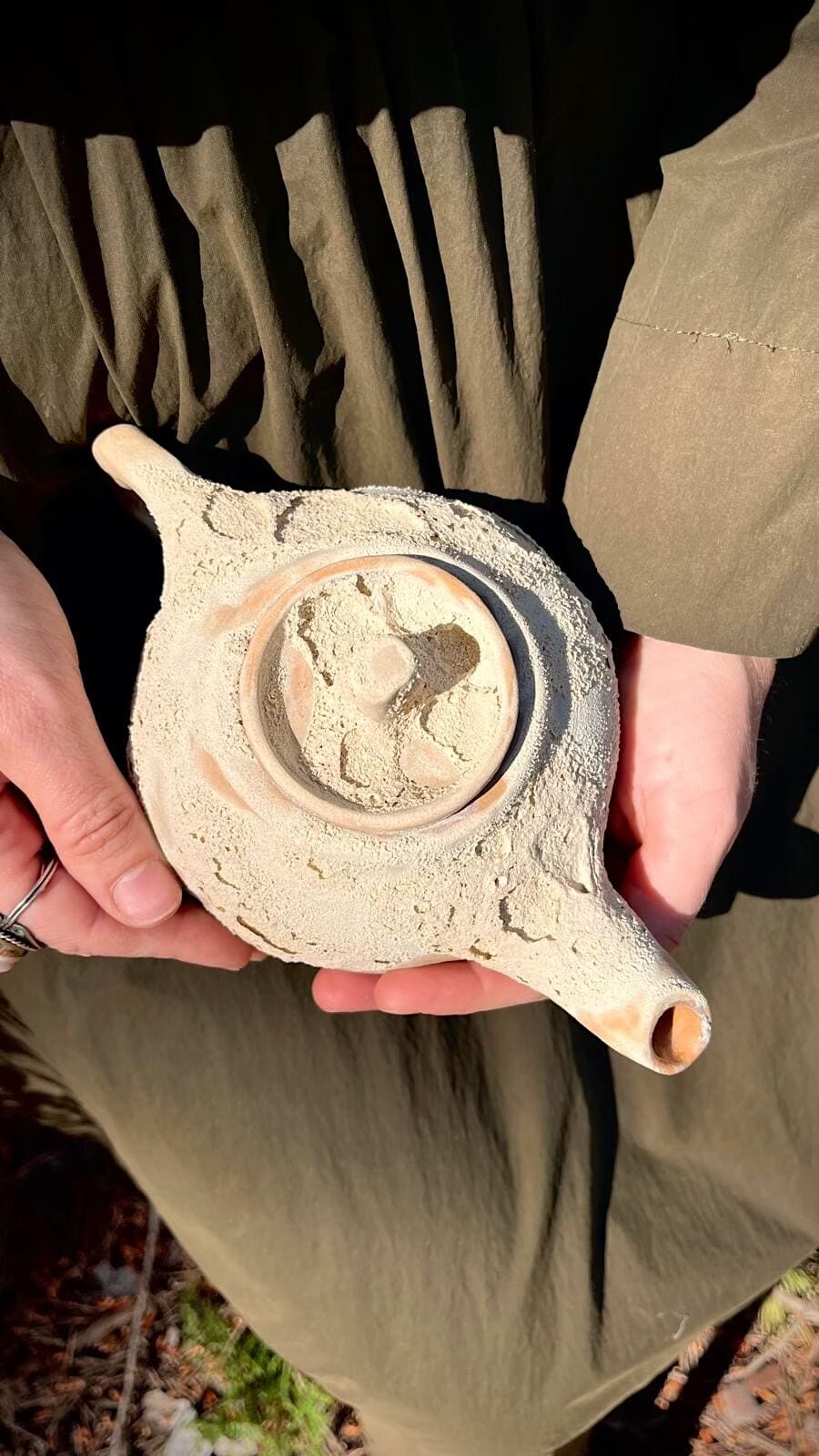 Las manos rodeando la forma aún tibia.